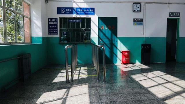 宽大的绿框窗户、木质推拉门、略显斑驳的台阶地面、陈设简单的候车室……长征站让人有一种穿越感,仿佛置身于20世纪七八十年代的场景之中。