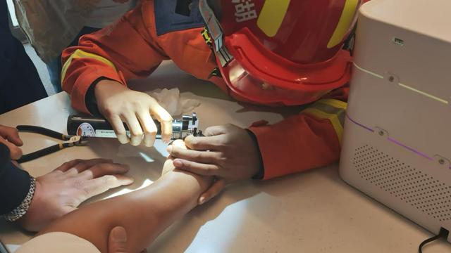 每天佩戴的戒指一旦“发脾气”,还真是戴上去容易取下来难。10月20日,长沙市消防救援支队接到群众电话称自己手上的戒指因手指受伤现在肿胀卡住,自己多次尝试都取不下来,无奈只能报警求助。接警后,高新区消防救援大队虹桥中心站立即出动1车7人前往现场处置。