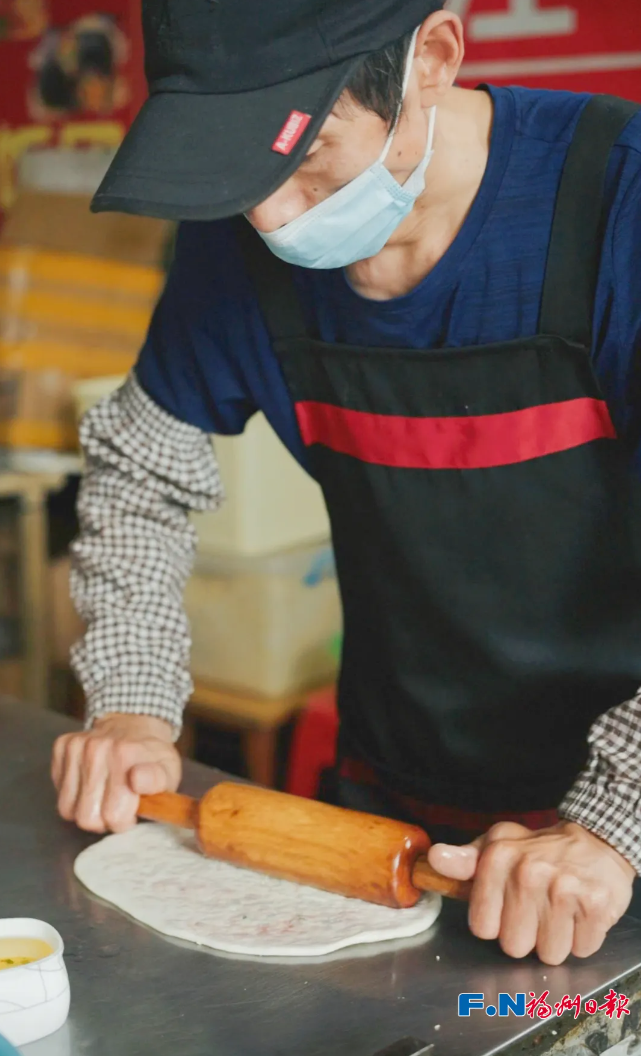 灵巧地将擀好的面饼