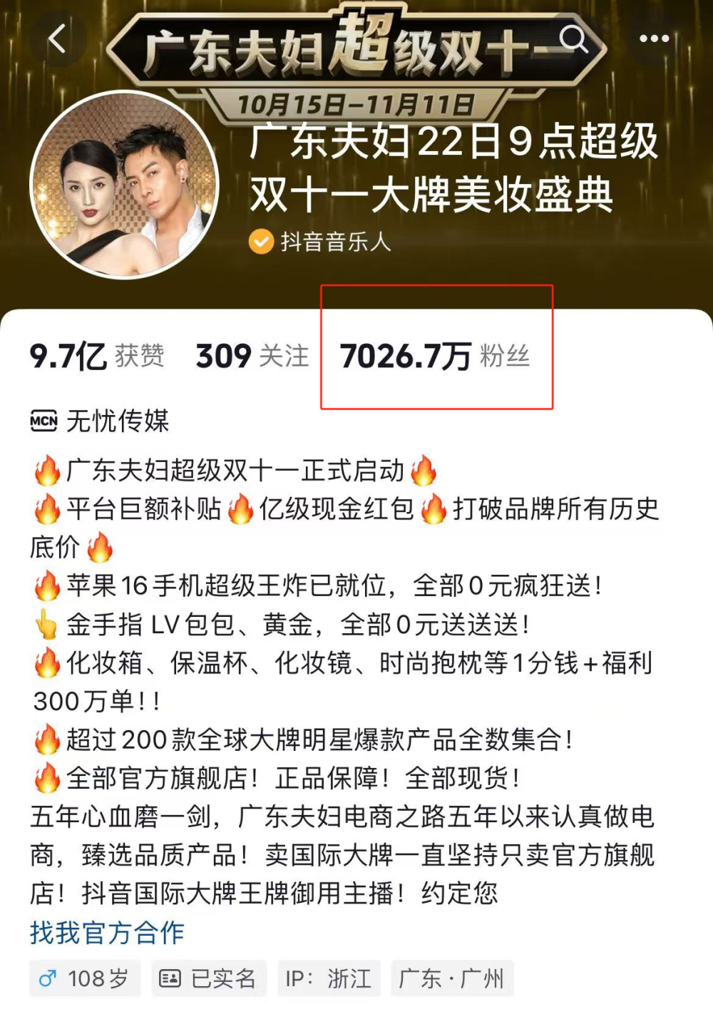 值得注意的是,自补贴事件风波开播以来,“广东夫妇”的粉丝数量已经突破了7000万。