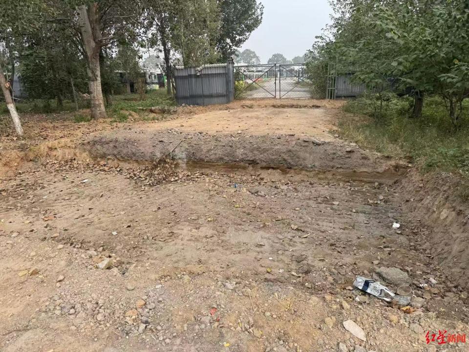 ▲新成公司进出停车场的道路被挖断