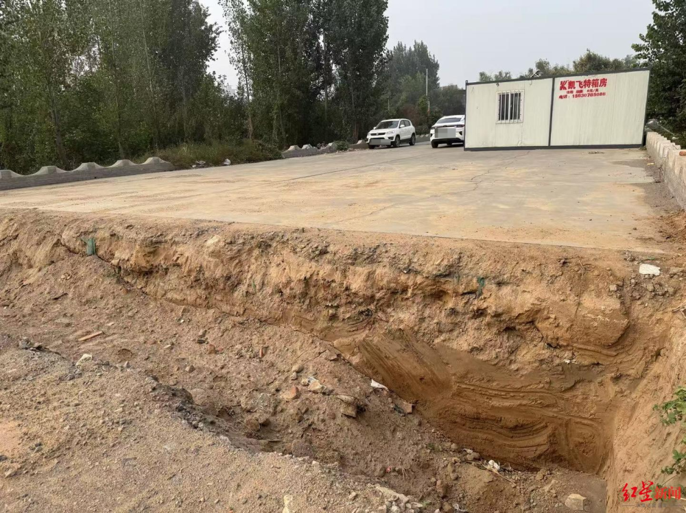 红星新闻记者近日在现场看到,新成公司南侧和西侧进出停车场的道路上,有阻断整条道路的大坑,其中西侧道路大坑宽度在两米左右,最深处有两米左右,行人难以通过。同时,有两辆小汽车和一座活动板房将道路堵住,南侧两条道路中靠西的一条有两个大坑,其中离大门较远的大坑宽度达三四米左右。南侧靠东的道路没有坑,但有两辆小汽车和一个活动板房将道路堵住,其中一辆汽车印有“交通执法”字样,车内无人。另一辆车上有一位女士,记者上前询问道路阻断情况,其未作回答。