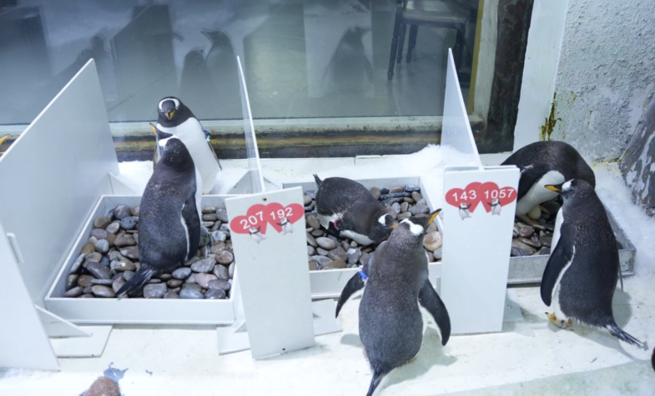为了确保企鹅种群的多样性,在企鹅的恋爱季,饲养员们会当红娘。“仔细观察企鹅们的恋爱行为,排除近亲繁殖,有时要撮合那些互相看对眼又不敢表达的企鹅,有时又不得不‘拆散’。企鹅跟人一样,有不同的性格。”