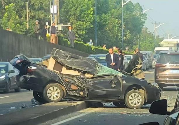 接到报警后,相关单位赶赴现场处置。经确认,这起事故未造成人员伤亡。牵引车到场后,陆续将车辆牵离现场。