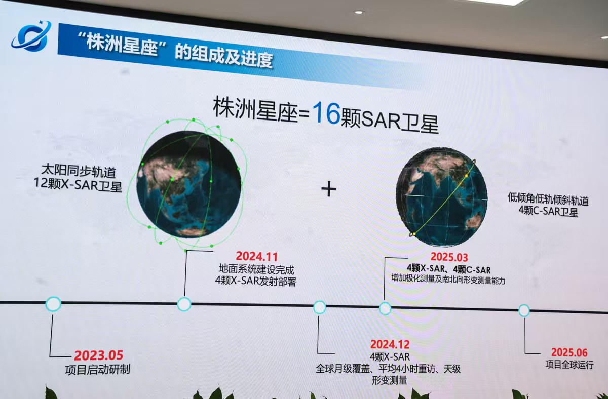 “株洲星座”是由16颗小型SAR卫星组成的混合式InSAR卫星星座系统,是国内第一个混合式雷达遥感卫星星座,具有单星高分辨率成像、多星高精度干涉测量、星上图像处理与自主运行、应急通信与快速响应、以及长期稳定数据产出等能力。卫星具有高精度形变监能力,监测精度最高可以达到毫米级,可实现对道路、大坝、矿区、建筑物等基础设施的安全监测。卫星能够开展全球区域定期覆盖、特定区域快速重访、重点目标高频监视、特殊用户应急调用等观测任务,支持和服务国土资源、地震、防灾减灾、基础地理信息获取及林业等应用需求。