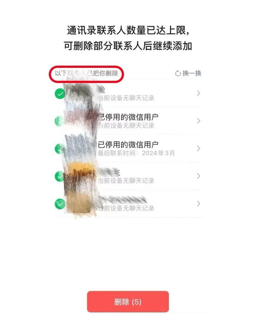 10月23日,社交媒体消息称微信正在进行一项新功能内测——可以查看已删除自己的联系人/好友,并可以选择性筛选与删除。记者看到,多名网友晒出的截图显示,微信提示“通讯录联系人数量已达上限,可删除部分联系人后继续添加”,并给出几个联系人选项,用户可直接删除或选择“换一换”。
