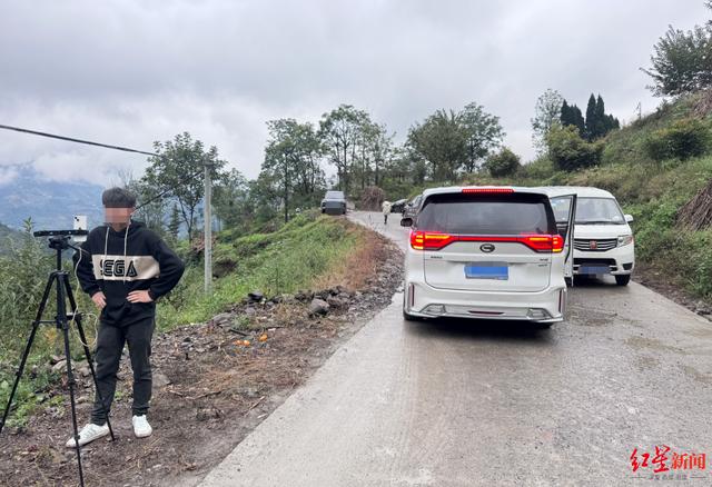 记者注意到,10月22日、23日两天,在前往“云南阿奎”老家的村道上,仍然有主播在直播。10月23日,有几名女主播在距村子几百米外的公路边偷偷开直播,但视频画面只能看到“云南阿奎”家所在村子的大概。