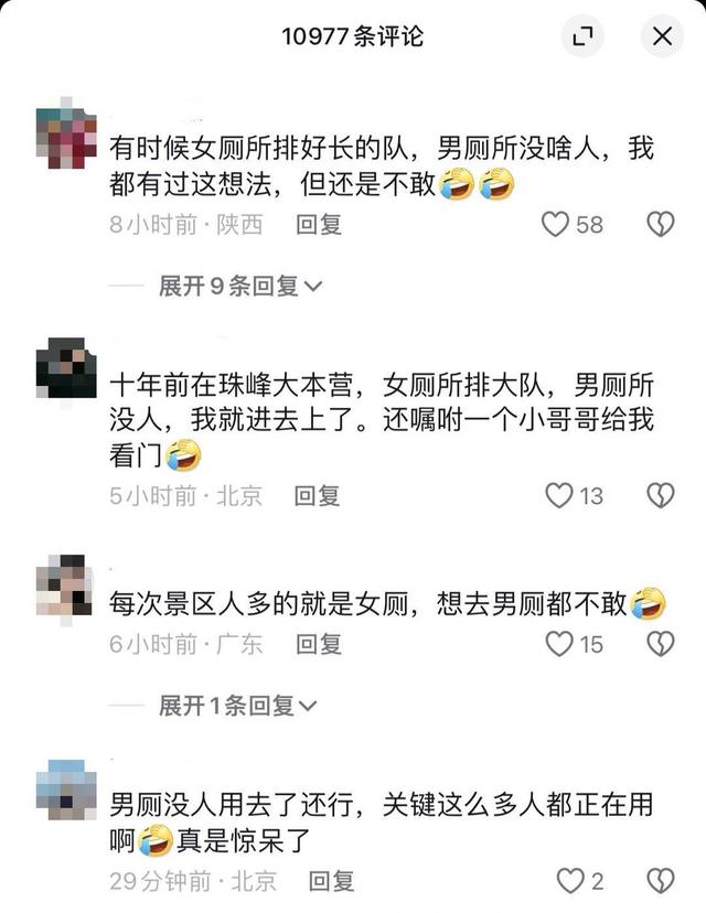 也有人认为公共厕所的女性卫生间通常要排很长的队,女性借用男厕也是可以理解。但在表达完理解后,大多会补上一句:“想去男厕,但不敢。”或者是:“男厕所没人的时候才会去。”