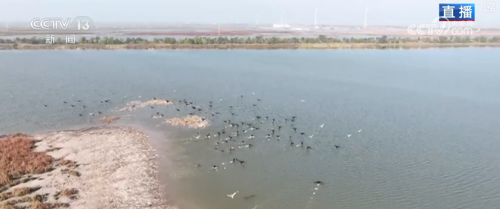 在每年候鸟迁徙的过程中,湿地的工作人员都会结识一些新朋友,像2024年在南大港湿地就先后发现了赤嘴潜鸭、棉凫、牛背鹭以及白头鹤这4张新面孔。现在出现在画面中的便是赤嘴潜鸭,它的嘴部就好像抹了红嘴唇一般十分鲜艳。这是牛背鹭,它是唯一一种不爱吃鱼而只爱吃昆虫的鹭类,因为喜欢在牛背上停歇而得名。这些新朋友的到来也让南大港湿地的鸟类品种增加到了272种。 引黄补水丰富湿地生物多样性
