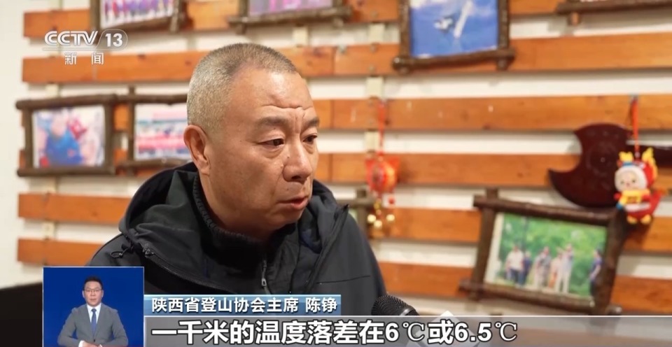 陕西省登山协会主席 陈铮:进入秋冬交换季节,一千米的温度落差在6℃到6.5℃。
