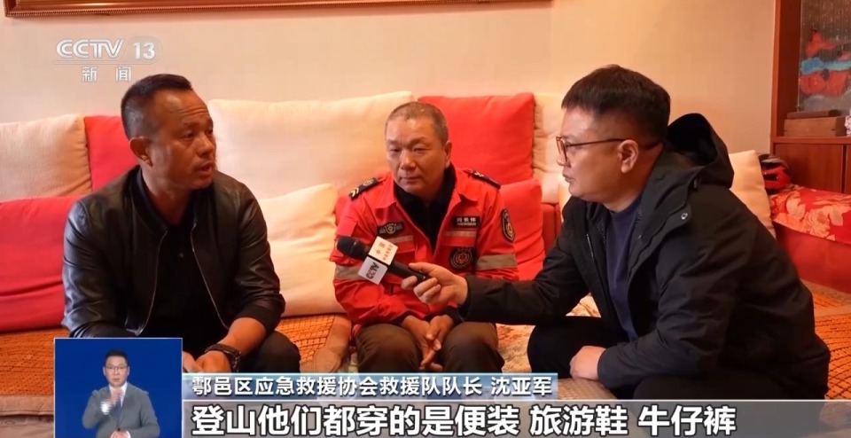 参与救援的西安市鄠邑区应急救援协会救援队队长沈亚军告诉记者,当时他们的救援队员找到被困的几人时,从他们的穿着和装备来看,他们甚至缺乏最基本的参与登山运动的常识。