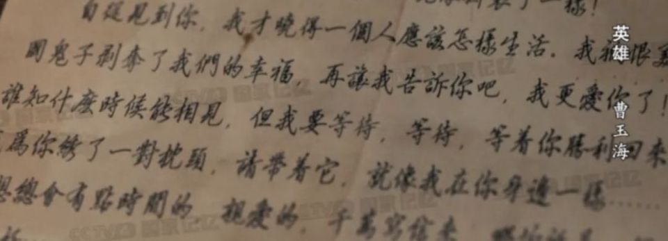 曹玉海未婚妻写给曹玉海的信。来源:CCTV国家记忆