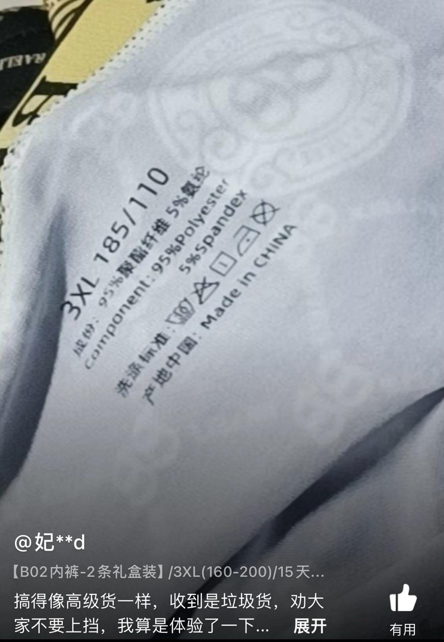 售价8.8元到手2条的内裤,购买过的消费者对其有何评价?在商品评论区,近300名消费者给出“中差评”,虚假宣传、“垃圾货”、味道刺鼻……成为其中的高频词。多名消费者晒出内裤实物图并表示,内裤成分为95%聚酯纤维和5%氨纶,和直播间宣传的纯棉完全不一致,“一点棉都没有。”