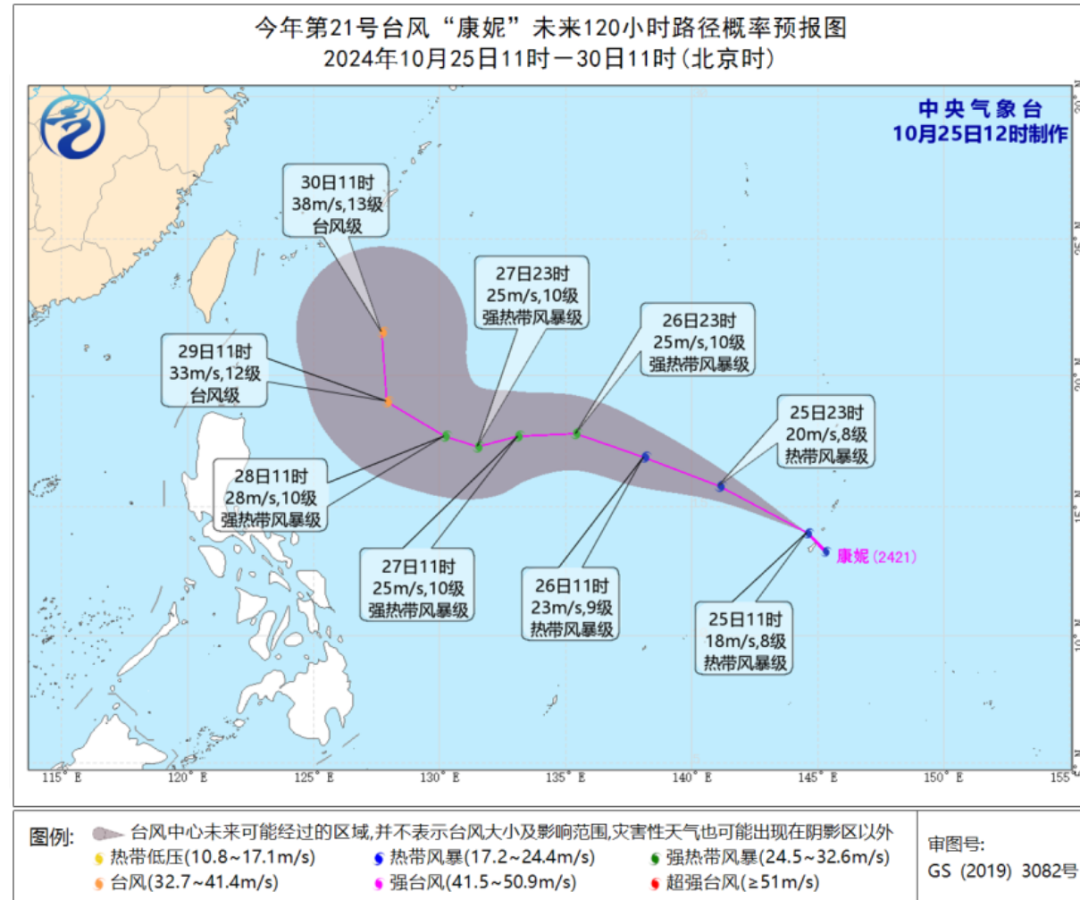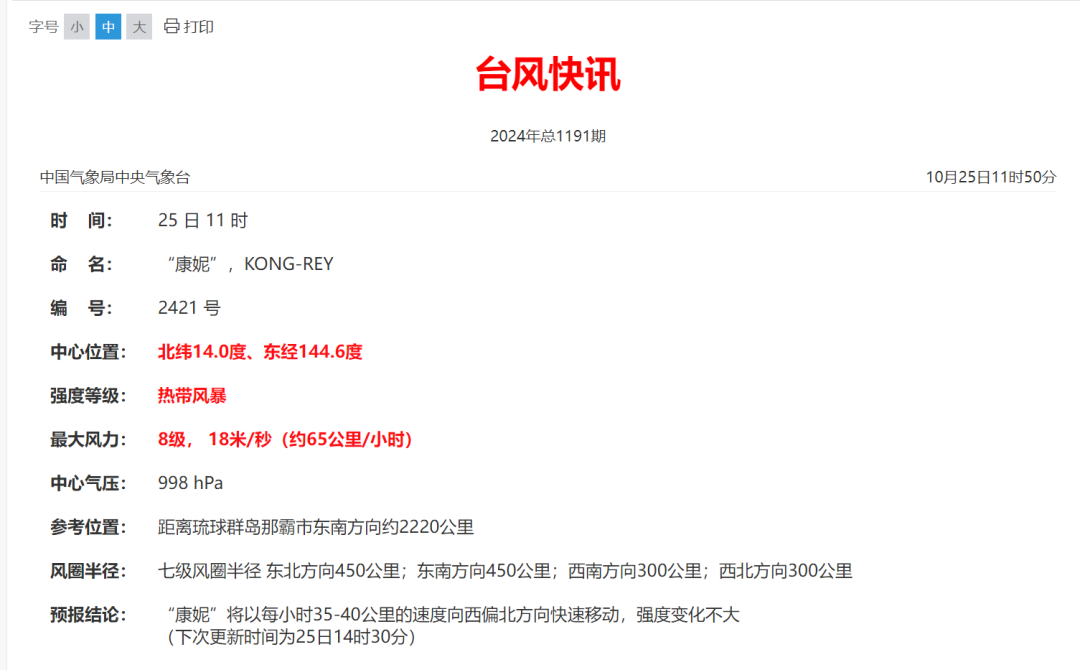 据中央气象台消息,今年第21号台风“康妮”已于今天(10月25日)上午在西北太平洋洋面生成。