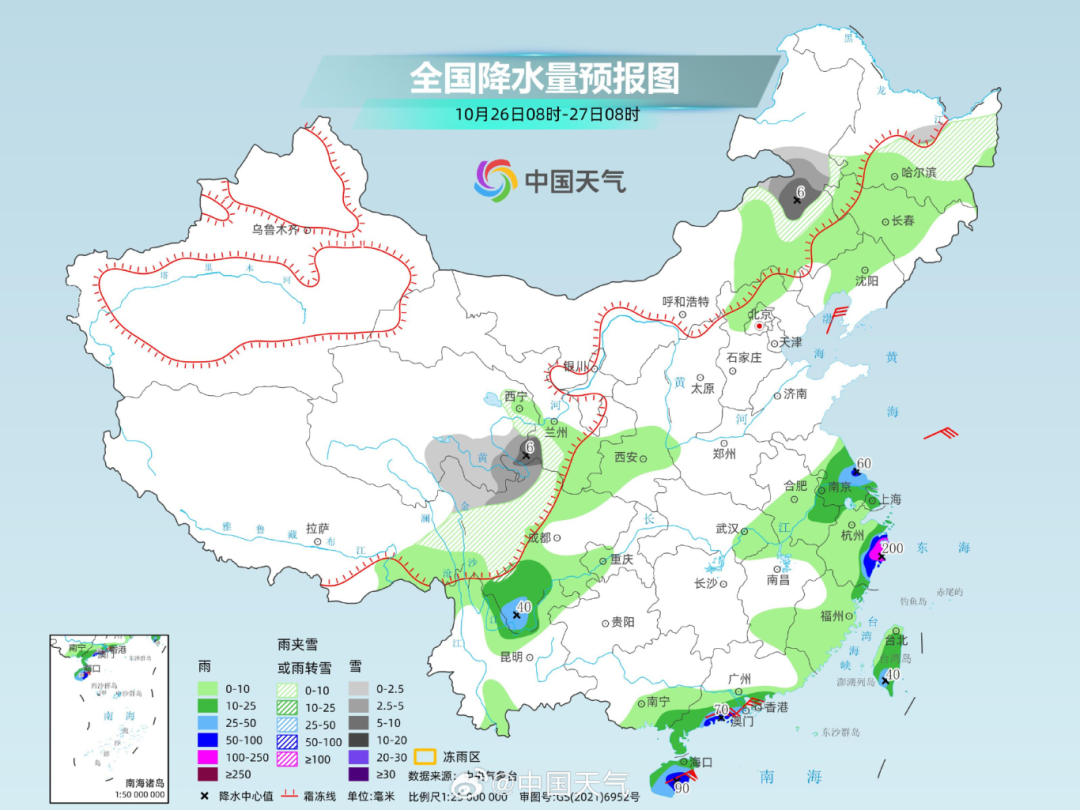 其中10月25日,浙江沿海地区、福建东北部、台湾岛东部、西沙群岛、中沙群岛等地部分地区有暴雨或大暴雨,局地特大暴雨。明天(10月26日),江苏中部、浙江东部沿海、广东西南部沿海、海南等地部分地区有暴雨或大暴雨。