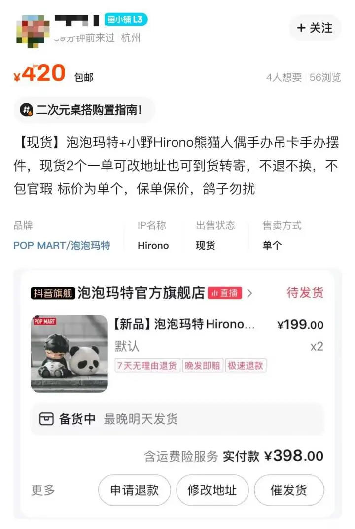 小野Hirono人偶熊猫手办,发售价199元,溢价到420元。