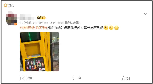 有网友吐槽泡泡玛特比演唱会的票还难抢。
