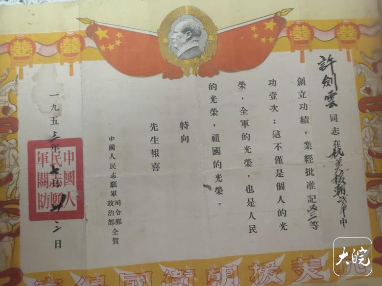 许剑云和妻子一共养育了四个孩子,居住在安徽池州的他现在住得离三儿子许东升比较近,平时许东升每天都会过来照顾两位老人的生活起居。采访中,许东升也充满自豪地告诉大皖新闻记者,“我父亲有这样光荣的经历,我们儿女也是很自豪的,更是非常敬重他。我也会常常跟我的孩子说他爷爷的事情,希望他能够早日成才,懂得报效祖国。”