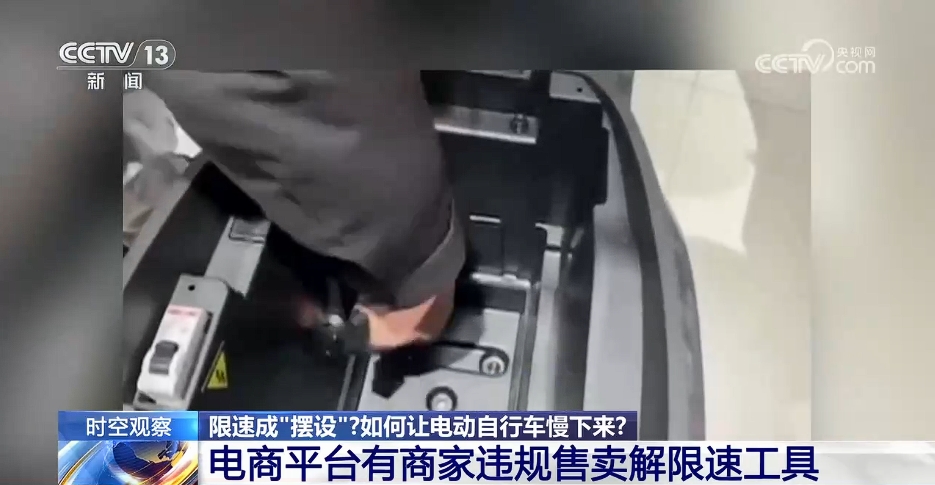 在电商平台上,一些商家在违规售卖解限速工具。一家店铺的销量最高的产品显示已售8000多件。客服人员给记者发来的操作视频显示,安装此工具需要拆卸座椅。客服人员告诉记者,各个品牌不同型号的电动自行车都有各自对应的解限速产品,他们的工具通过向电动自行车控制器发送信号,能够改变控制器的限速程序。