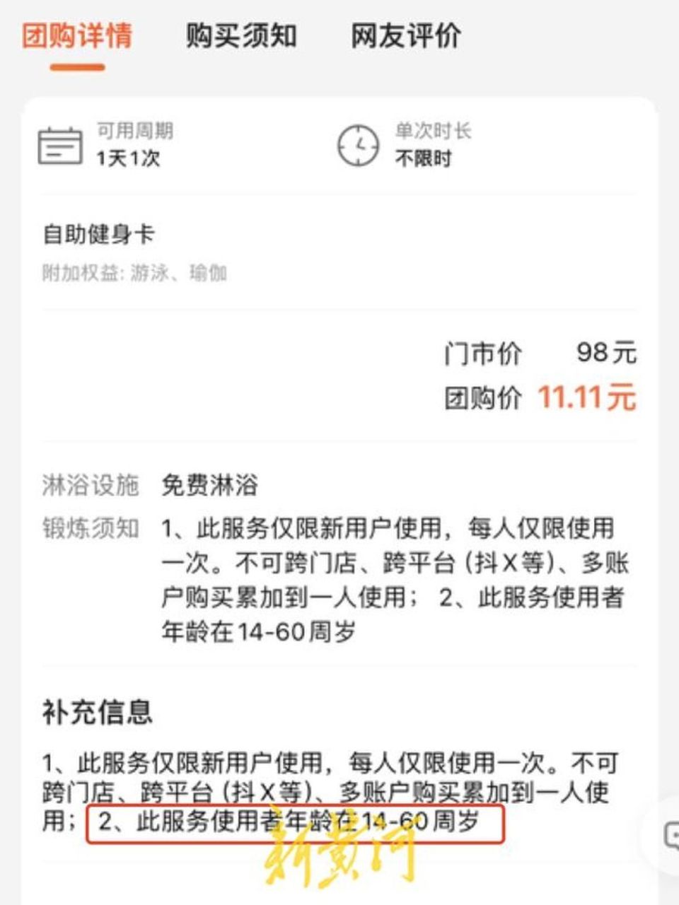 “我们场馆是健身游泳一体的,游泳馆谢绝65岁以上的老年群体,对于63岁及以上的顾客,想要游泳的,我们一般进行劝退。我们商业性质的游泳馆需要根据自身经营情况和风险承受能力,来制定适合的入场规则,这样能够最大限度地规避风险,这也符合市场经济的基本原则。”上述工作人员说。