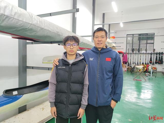 ▲谢恩祈(左)与教练刘辉合影(袁伟 摄)