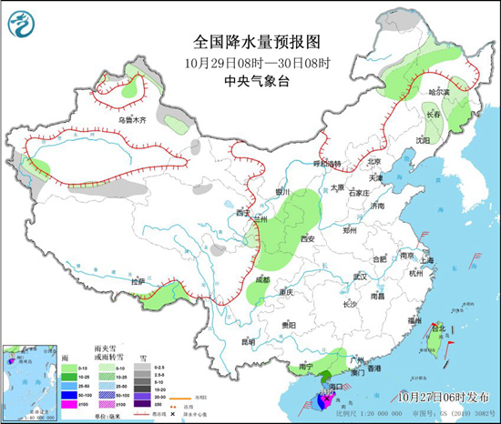 未来三天(10月27日至29日),今年第20号台风“潭美”继续西行,华南沿海仍有持续风雨天气,其中海南岛暴雨连连。眼下,弱冷空气继续影响北方地区,今明两天,降温区域将继续向东、向南转移,东北大部地区降温明显,公众需及时添衣保暖。