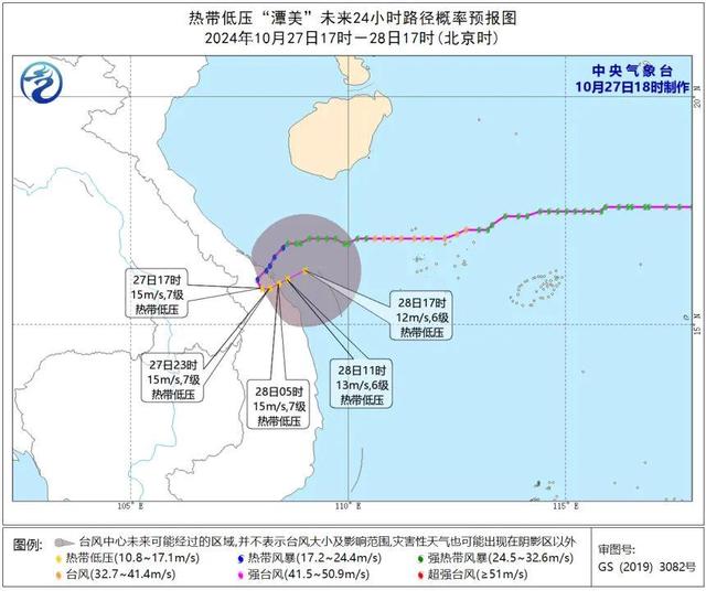 大风预报:27日20时至28日20时,受冷空气和“潭美”减弱后的热带低压影响,南海北部和西部海域、琼州海峡、北部湾以及广东西部沿海、广西沿海、海南岛沿海将有6-7级大风、阵风8-9级,其中北部湾偏南海域风力可达8级、阵风9-10级。