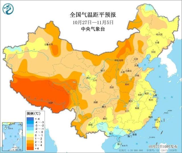 今天,上一股弱冷空气的影响已经进入尾声,受其影响,东北、华北、黄淮等地出现了不同程度的降温。预计下周,在11月3日之前,我国将没有明显的冷空气活动,气温整体较为稳定,全国大部气温主要以偏高为主,最高气温20℃线位于四川盆地北部到华北南部一线。