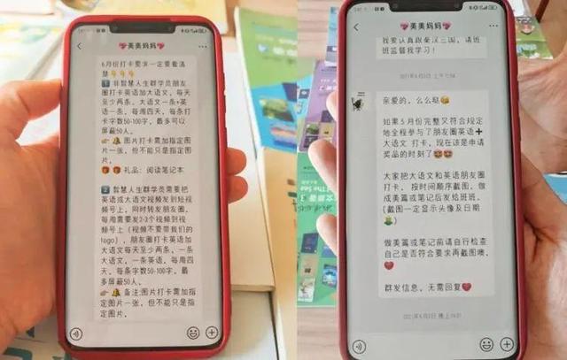 “他们一味地让我发朋友圈打卡晒孩子的学习,甚至说可以发别人家的孩子。”张雯雯透露,“朋友圈里发的,只有关于孩子的学习感受是自己编辑的,其它内容都是大咖训练营给的。发完后还要给他们提供一张图片,证明自己没有屏蔽朋友圈,他们承诺会给一些小礼物或者红包。”