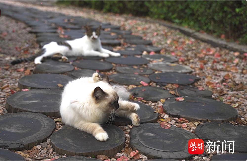 猫岛面积26000多平方米,目前有150只左右流浪猫,大部分都是通过救助而来。朱菲告诉记者,在猫岛营业之前,景区就发起了一些岛民征集的活动,通过一些个人救助和一些社会组织救助,景区最终选了一些性格较好、健康状况佳的猫上岛。上岛后,景区还要安排专业人士对猫咪经过一段长时间的社会化训练,通过良好的互动,让它和人类再重新建立起信任的关系。岛上有专门的兽医来关注它们的健康状况,而且对所有救助的流浪猫都进行了绝育,所以岛上的现在的猫性格都很好,很乖。