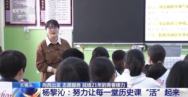 新疆哈巴河县高级中学历史教师 李源江:我打了97分,这种比较创新的教学手段手法,让学生真正地走进历史、感悟历史,更好地学习。在杨老师志愿服务的这一年时间,我觉得我们之间真的是一种相互学习。从她身上,我们看到了年轻人的活力和对教育的热情。