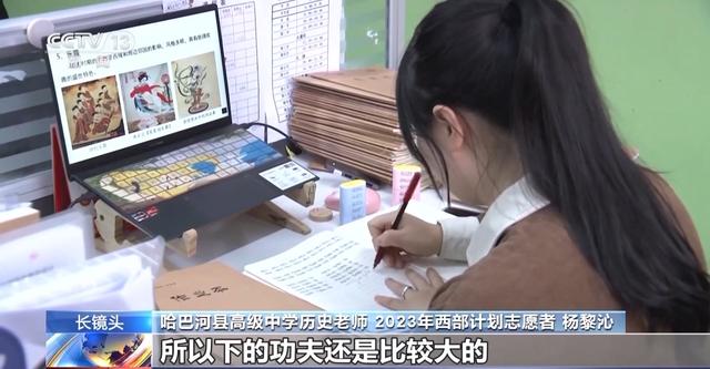 新疆哈巴河县高级中学历史老师 2023西部计划志愿者 杨黎沁:四个字,手足无措。同学们就是不感兴趣,他们就做其他科的作业,干一些和历史课堂无关的事情。我觉得提高孩子们喜欢这堂课的方法就是让他们参与到课堂上来,我一定要把整个知识点吃透,然后再用自己的方法去传递给他们,所以下的功夫还是比较大的。