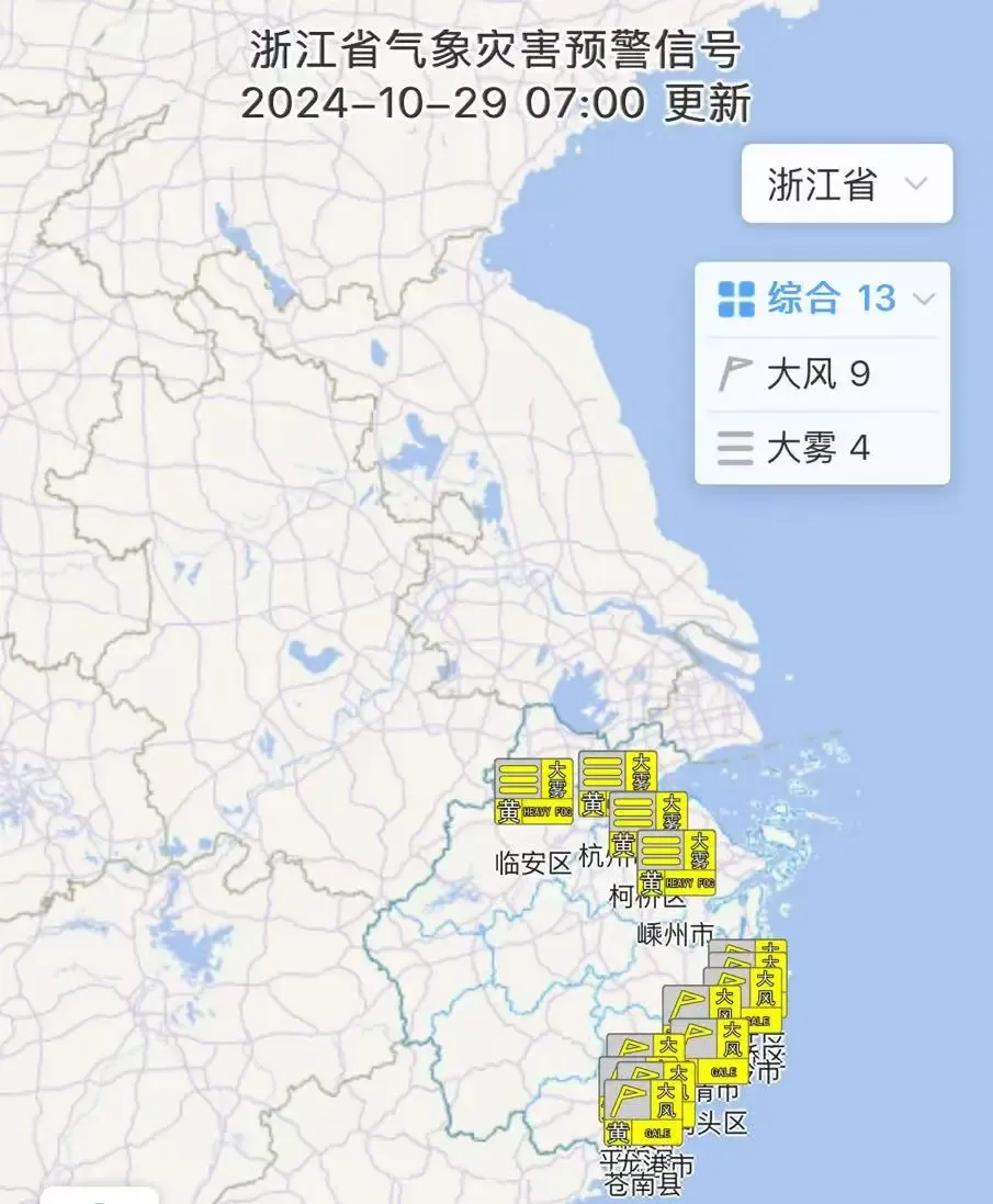 10月28日晚间,杭州市气象台发布大雾黄色预警信号,请市民朋友注意防范。
