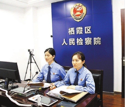2024年5月,南京市栖霞区检察院检察官远程提审犯罪嫌疑人。