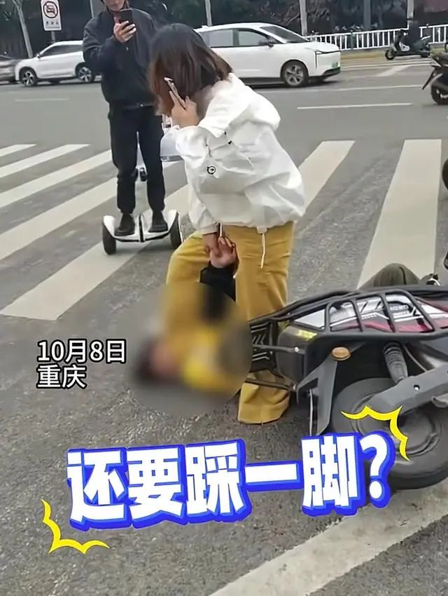 10月8日,有网友发视频称,重庆大学城一女子当街殴打一外卖员。目击者称,涉事女子用脚踩外卖小哥员头部,还不断用手扇其脸部。