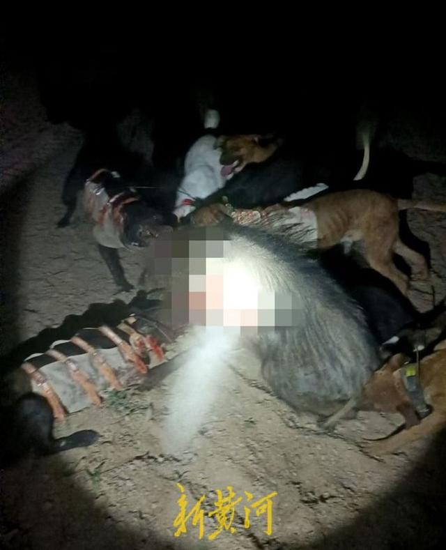 “先是用无人机锁定野猪位置,之后我们把猎狗带到离野猪最近的地方。放开猎狗后,十几只猎狗会一拥而上,嗅觉犬负责寻找野猪方向,快帮狗、拖狗会跟着嗅觉犬随时准备向野猪发起攻击。在经过片刻激烈战斗后,我们的人会在已经被猎狗撕咬得精疲力竭的野猪身上补刀。接下来,这头被成功拿下的野猪就会被送往专门地点由无害化处理队伍进行处理,严禁食用、流入市场。”10月26日,入选本次猎捕野猪队伍的金勇护农队队长高勇勇向新黄河记者介绍了他们所使用的猎捕野猪的方法。