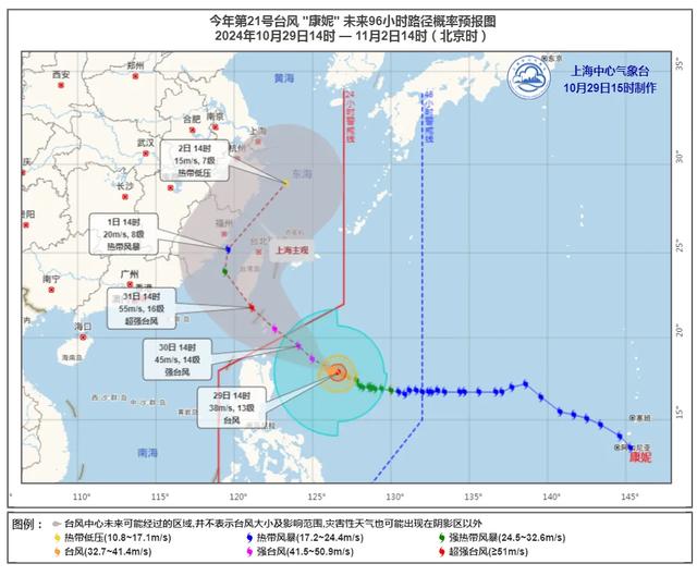 大风方面,10月31日傍晚起,上海大部阵风6级至7级,高层建筑及沿江沿海地区阵风7级至8级,11月1日白天逐渐增强至阵风7级至8级,高层建筑及沿江沿海地区阵风9级,2日下午风力趋于减弱。