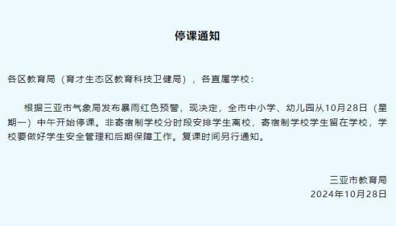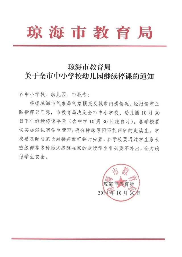 琼海10月30日下午继续停课半天