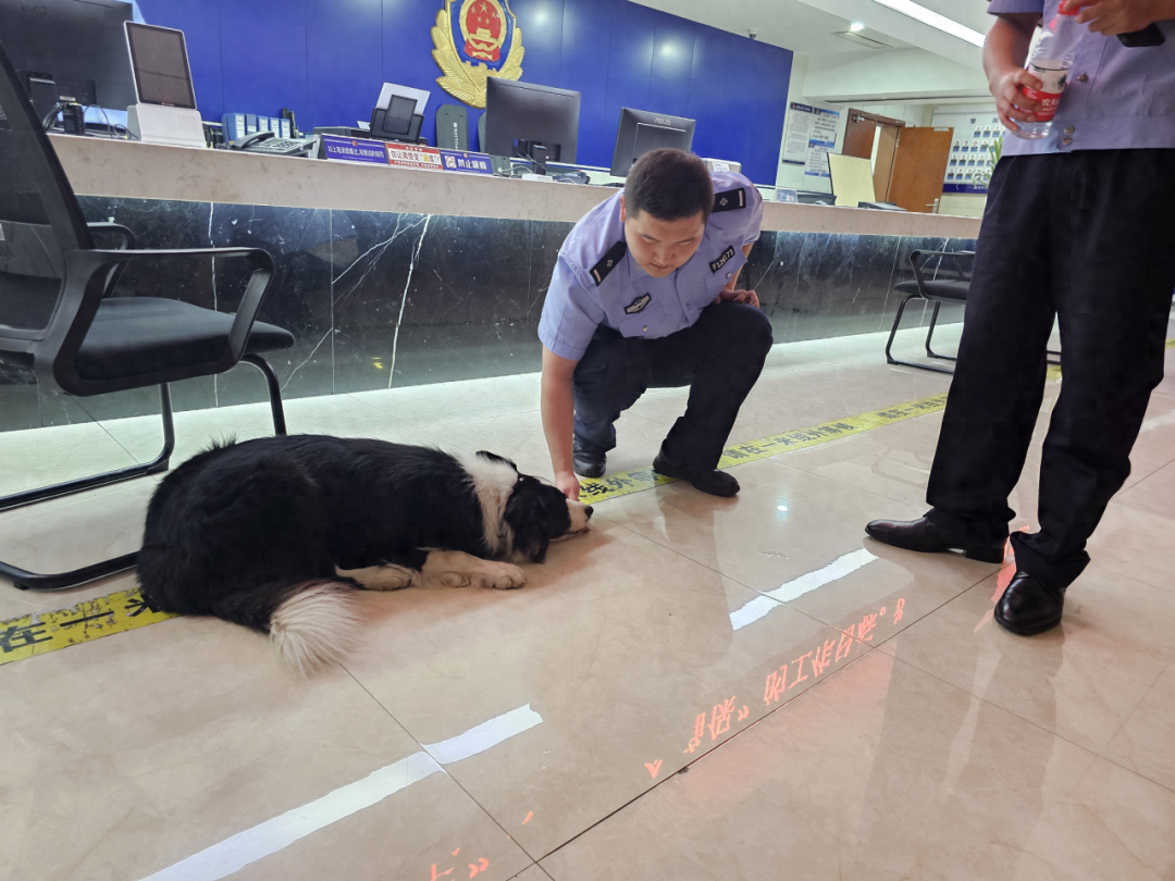 民警对狗狗进行了仔细查看,但并未发现它身上有任何身份信息。此时,有民警想起来,咱们派出所后面小区似乎有一家人养了这么一只牧羊犬,就是不知道那家人具体门楼号牌,由于一时无法联系上狗主人,只好让它在派出所留宿一晚。