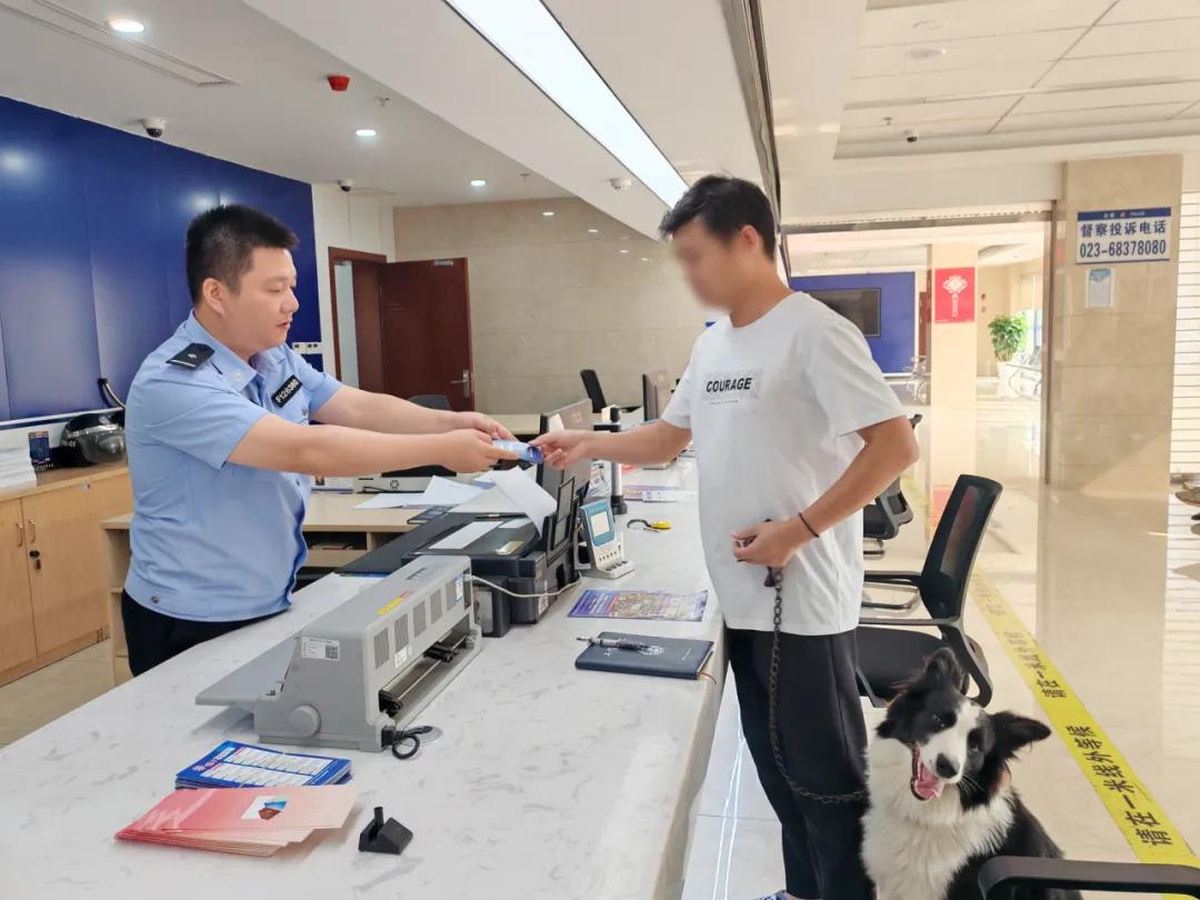 随后,该男子来到派出所认领狗狗,男子对民警表示了感谢,并向民警保证不会再出现类似情况了。在交谈中,民警得知这条狗狗已经注射了疫苗,但还未办理养犬证,民警便当场为其进行了办理。