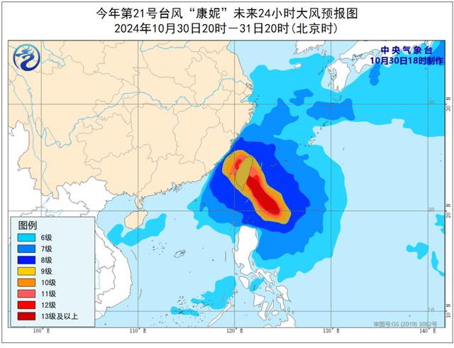 中央气象台今晚升级发布台风橙色预警!根据最新预报,预计,“康妮”将以每小时15—20公里的速度向西北方向移动,强度维持或略有减弱,将于31日中午前后在台湾岛东部沿海登陆(48-55米/秒,15-16级,强台风级或超强台风级)。尔后穿过台湾岛,于31日夜间进入台湾海峡,以后沿浙闽沿海逐渐转向东北方向移动,强度迅速减弱。不排除“康妮”在向东北方向移动过程中登陆福建和浙江沿海的可能性。