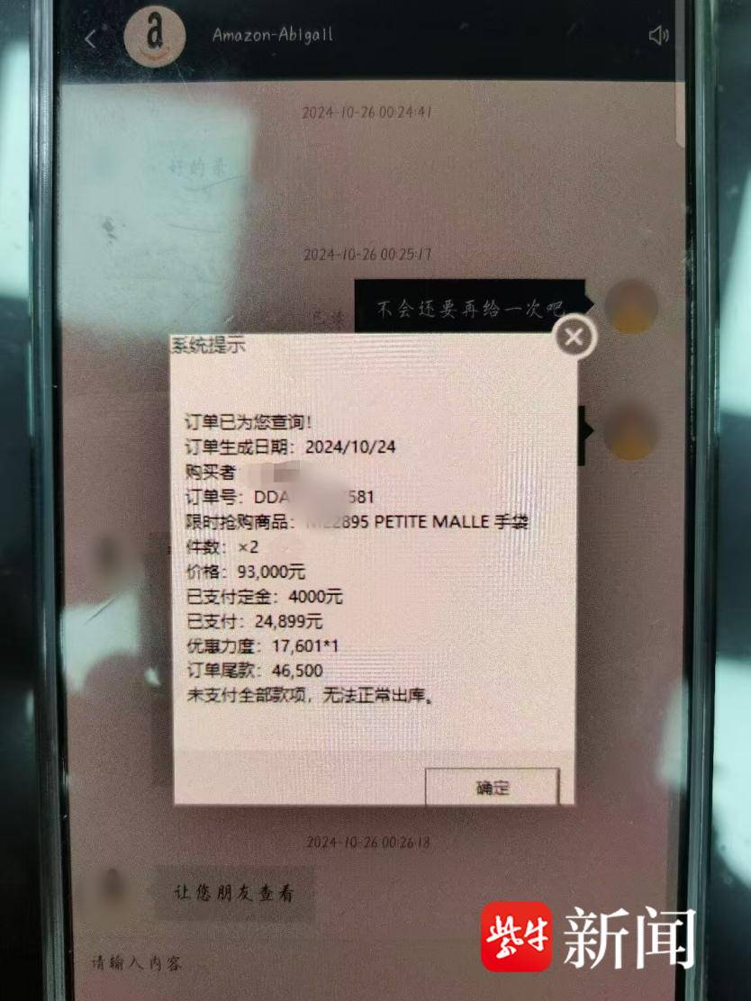 而此时购物平台的客服,竟联系小吴,称这个账号购买了两个包包,另外一个需要先补款,如没抢购成功就会退款。于是小吴又帮“室友”付了24149元。
