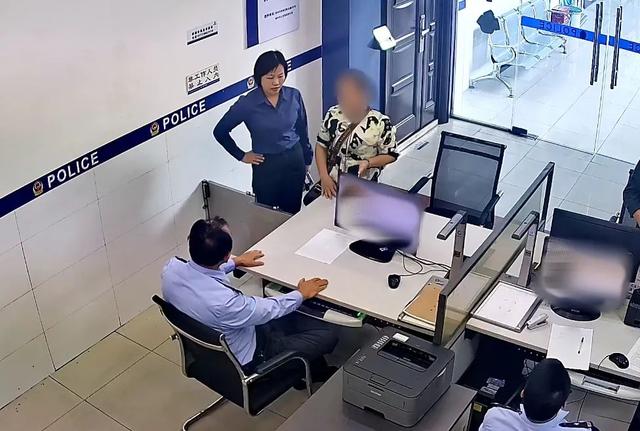 民警在派出所规劝覃女士免遭“黄金诈骗”。