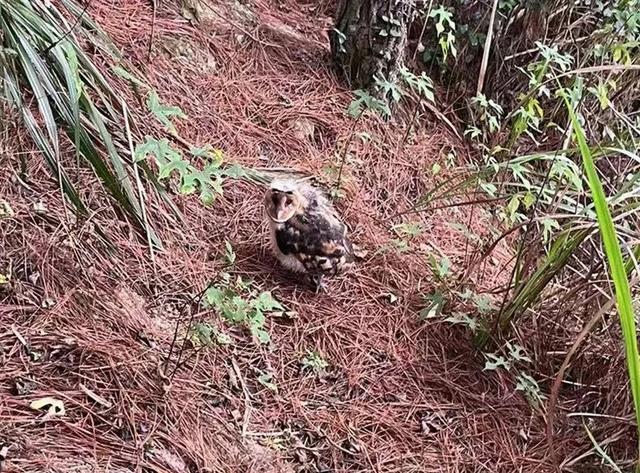 草鸮属珍惜野禽,别名猴面鹰,中型猛禽。因其似猴脸,长满绒毛,一双深圆大眼,嘴黄褐色,嘴喙不尖,面盘灰棕色,呈心脏形,有暗栗色边缘,是国家二级保护动物。