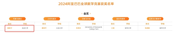 11月3日,阿里巴巴全球数学竞赛组委会公布2024阿里巴巴全球数学竞赛获奖名单,共有86名选手获奖,其中金奖5名,银奖10名,铜奖20名,优秀奖51名。