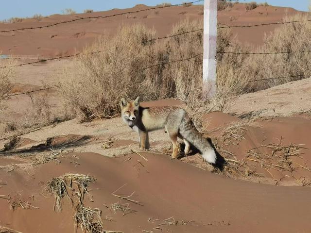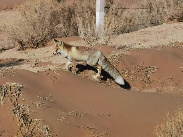 近日,甘肃民勤连古城国家级自然保护区管护中心工作人员在北石榴井片区巡查时,又一次邂逅国家重点保护动物赤狐,其背部棕红色,皮毛顺滑,体色靓丽,颜值颇高。