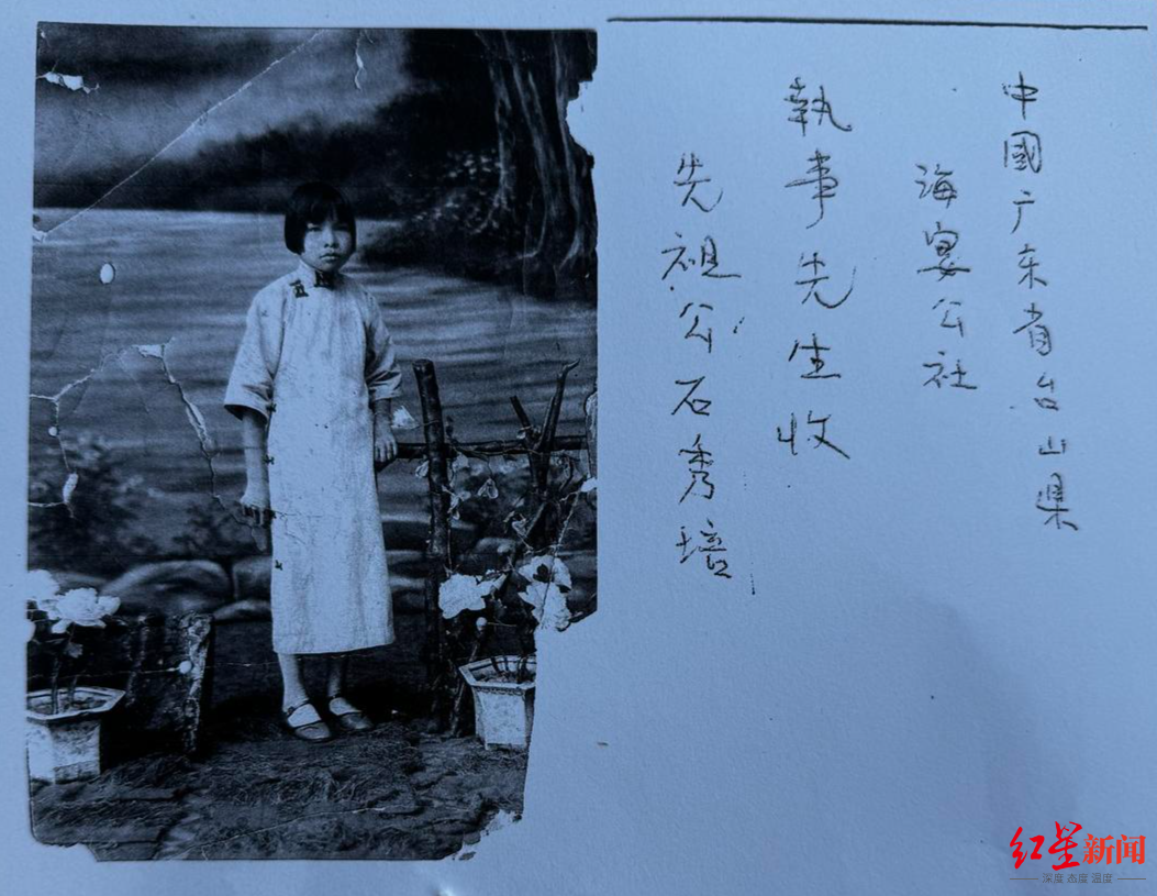 复印件上还有张照片,是一名身穿旗袍、看似约十多岁的女孩,西亚克斯说那是自己在中国的同父异母的姐姐,她并不知道这个姐姐的名字,只知道父亲离开中国时,这个姐姐才1岁,如果姐姐还活着,今年已经103岁了。西亚克斯称,她希望找到这个与自己血脉相连的姐姐。