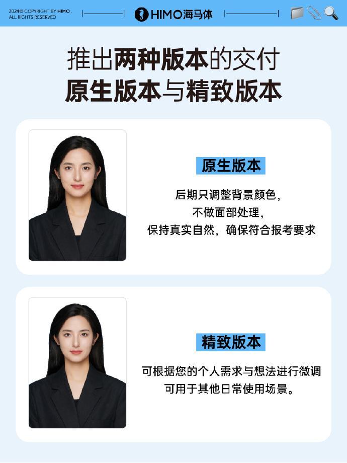 因此小海马2021年开始在教育报考、签证回执类证件照推出了两种版本的交付,原生版本与精致版本。