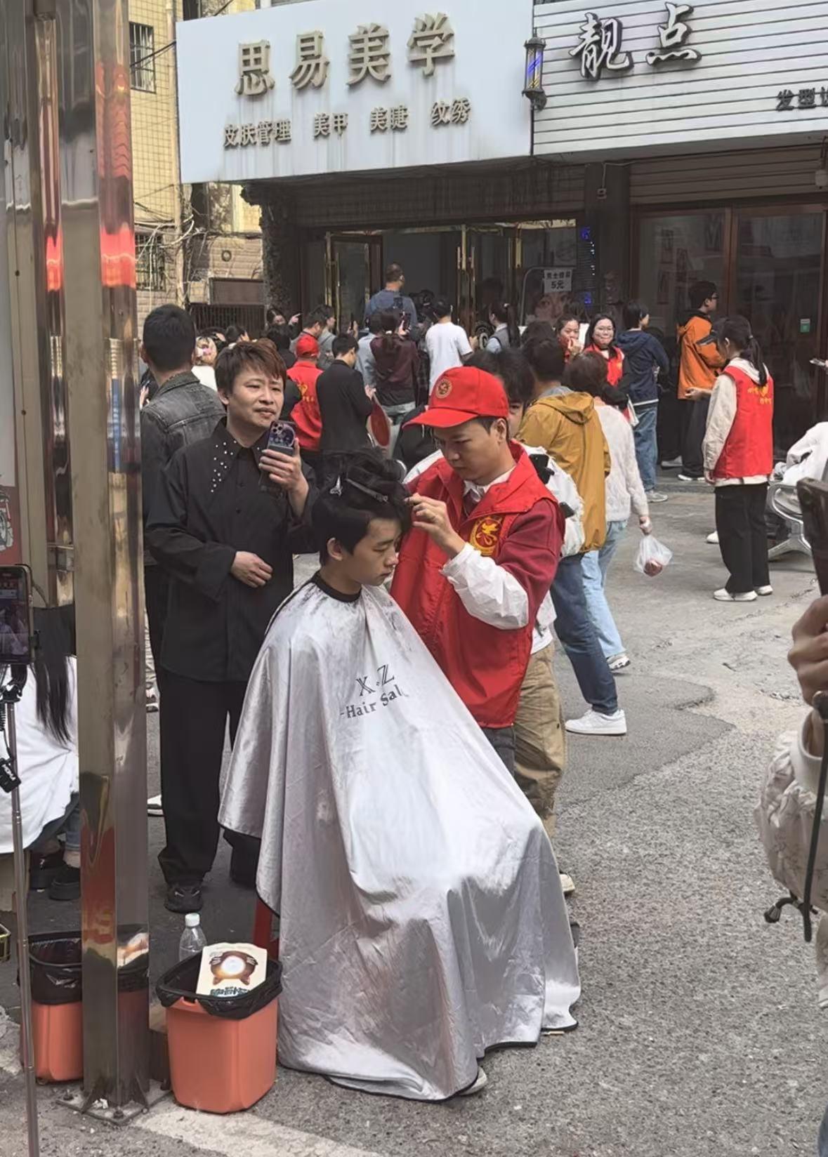 记者注意到,11月5日上午,在李晓华理发店所在的街道上已经有许许多多的来摆摊的商户,社区还为广大慕名而来的人们准备了座椅,甚至还有前来体验的外地理发师在店外为没取到号的顾客们免费理发,整条小街充满着热闹的氛围。