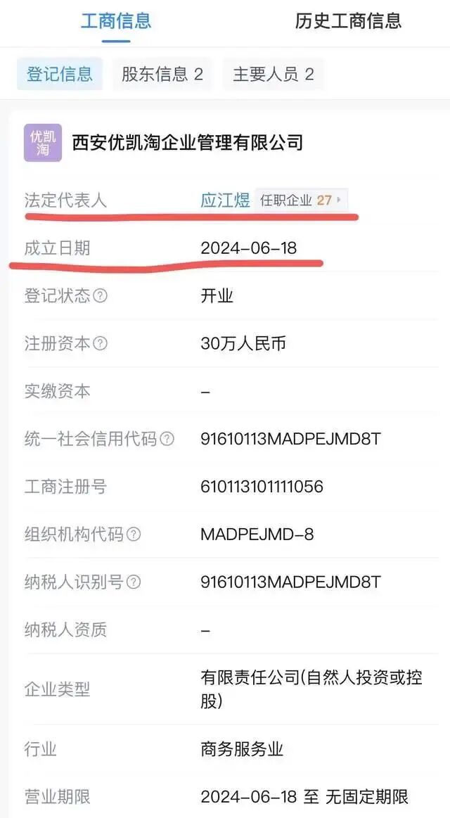 据了解,西安优凯淘企业管理有限公司,是今年6月18日成立的,主要经营范围是企业管理咨询、企业管理等。
